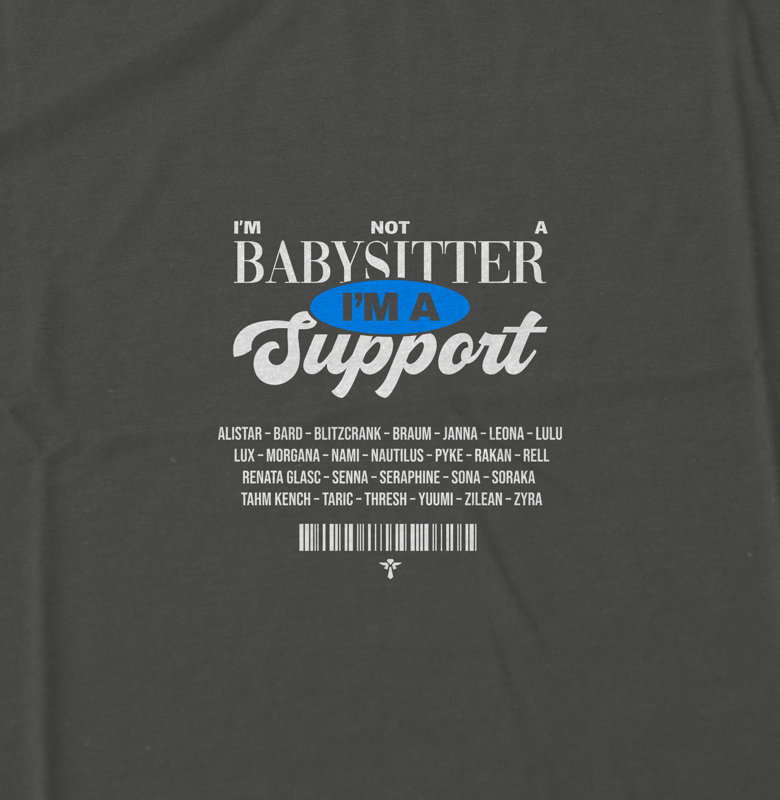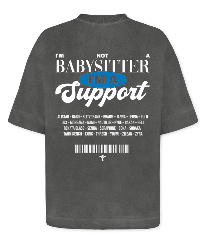 Camiseta Oversized Boxy I’m Not a Babysitter, I’m a Support — feita pra quem carrega o time com visão, estratégia e paciência digna de um santo. Estampa nas costas que fala por você: aqui é suporte, não babá. Perfeita pra main support de League of Legends que joga com estilo e personalidade. Tecido em 100% Algodão. Modelo Oversized Boxy. (MODELO QUADRADO).