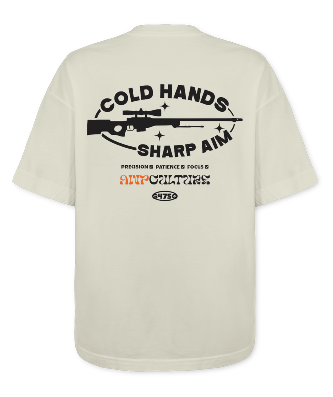 Camiseta AWPCulture — feita pra quem domina a AWP com sangue-frio e precisão absurda. Com a frase "Cold Hands, Sharp Aim" essa peça representa o estilo de jogo paciente, letal e respeitado. Pra quem sabe que um tiro basta. Tecido em 100% Algodão. Modelo Oversized.