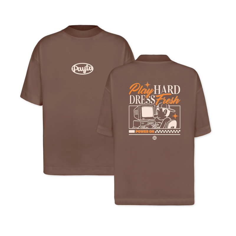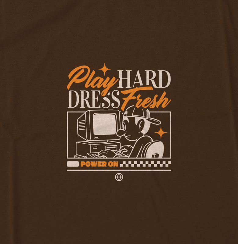 Camiseta Oversized "Play Hard Dress Fresh" — feita pra quem joga com atitude dentro e fora da tela. Com a frase estampada nas costas, ela combina o estilo street com a energia gamer. Conforto, estilo e personalidade em uma só peça — porque vencer também é uma questão de estilo. Tecido em 100% Algodão. Modelo Oversized.
